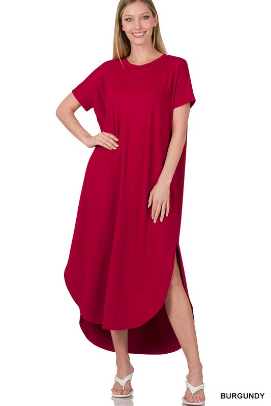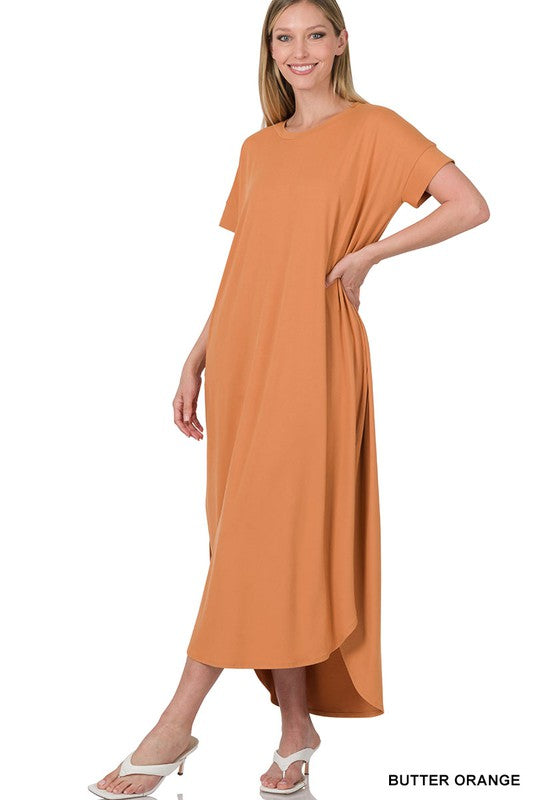 BRUSHED DTY SHORT SLEEVE MAXI DRESS