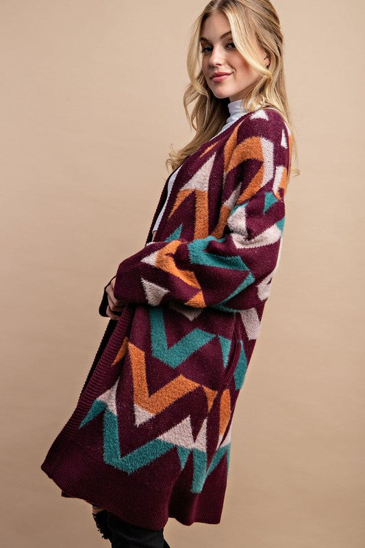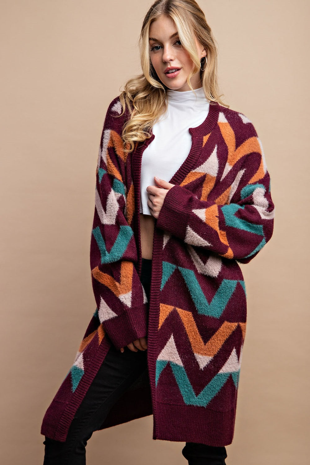 Wrap yourself in warmth and comfort with the Carmen Sweater Cardigan. The stylish chevron pattern adds a touch of sophistication, while the knit fabric and cardigan style keep you cozy. With convenient pockets and a blend of acrylic and nylon, this cardigan is perfect for any occasion.