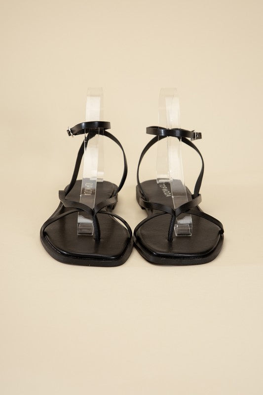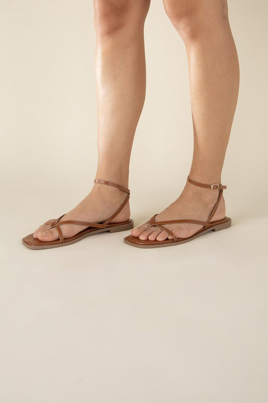 A stylish and comfortable pair of strappy sandals that effortlessly combine fashion and functionality. These sandals feature an open toe with a square shape and a flat heel, making them a versatile and practical choice for your warm-weather wardrobe.