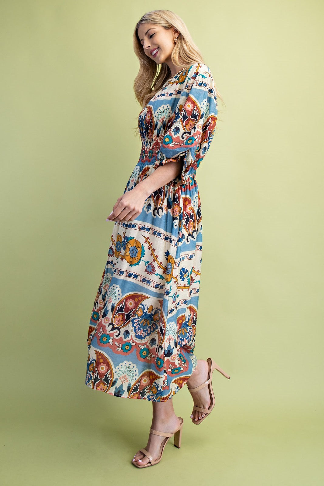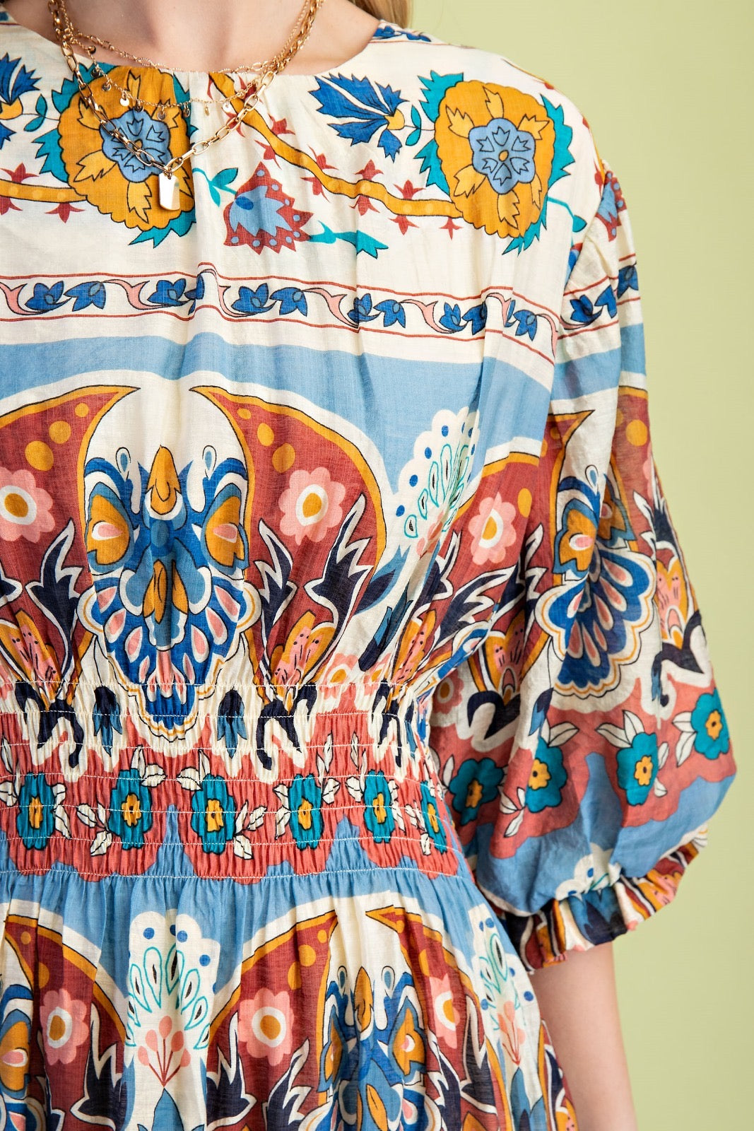 Made of high-quality 70% Rayon and 30% Polyester, this dress boasts a smocked waist for a flattering silhouette and 3/4 length balloon sleeves for a touch of romance.