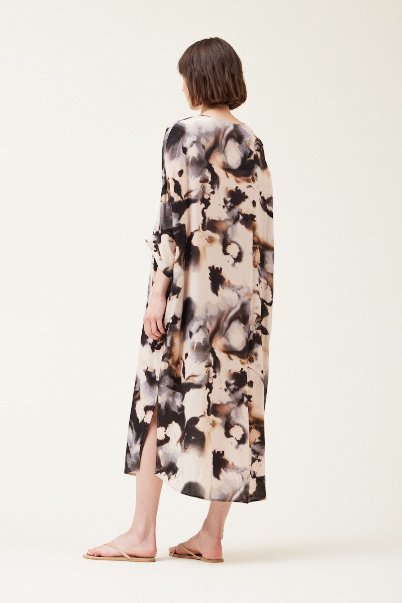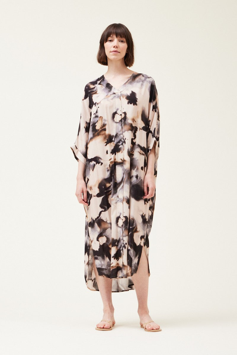 Embrace effortless bohemian style with the Florence Caftan Dress, featuring a captivating swirl print and an oversized fit for ultimate comfort.