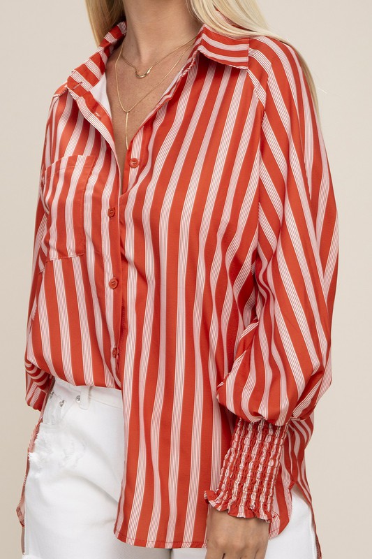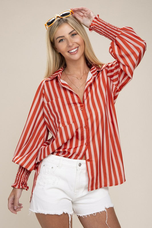 Pleated button down shirt