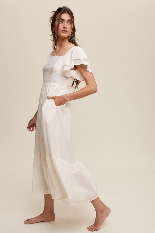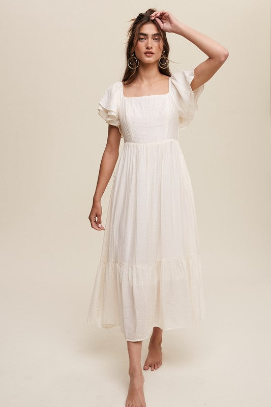 Square Neck Ruffled Short Sleeve Maxi Dress