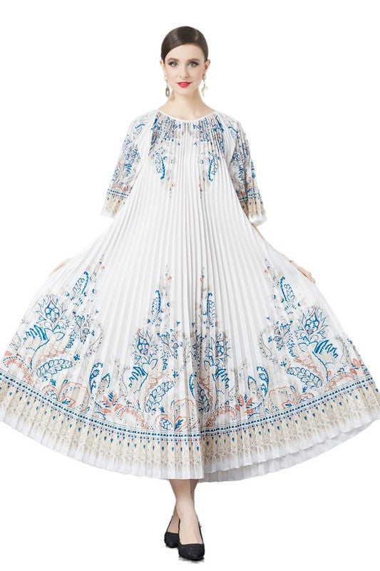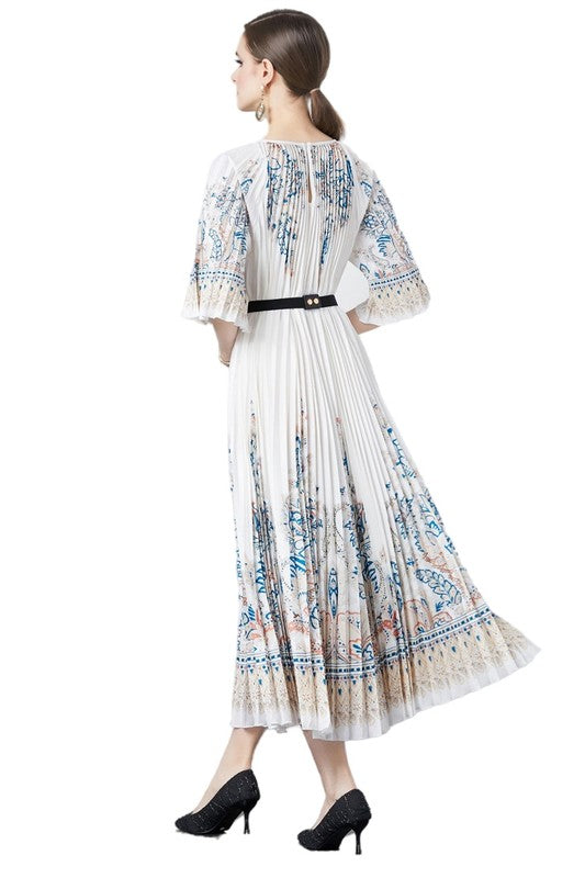 Sexy fashion dress, round neckline,3/4 short sleeves, stretch fabric, pleated style skirt with belt